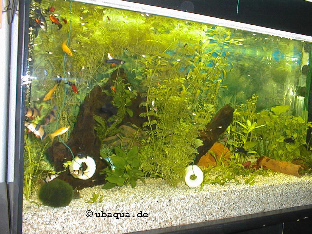 Als ich im Jahr 2000 mit der Aquaristik begonnen habe, hatte ich mich vor Anschaffung des 200 l Aquariums eingehend über die Aquaristik informiert (eingelesen), trotzdem sind auch mir typische Anfängerfehler passiert. In dem Becken pflegte ich ein paar Corydoras, Black Mollys, Platys und Guppys. Nach kurzer Zeit funktionierte der Außenfilter nicht mehr richtig. Nach Rückfrage und Überprüfung beim Hersteller war nicht die Funktion beeinträchtigt, sondern einzig und allein habe ich zuviel gefüttert. Das zu viele Füttern hatte dann nicht nur die Fehlfunktion des Filters zur Folge, sondern die Schnecken vermehrten sich ebenfalls explosionsartig. Zu dem Zeitpunkt kannte ich noch nicht die drta-Newsgroup und habe mich somit an meinen Händler des „Vertrauens“ gewandt. Dieser hatte natürlich sofort eine Lösung parat und hat mich gut beraten…. :-( Es wurden mir Prachtschmerlen gezeigt und dazu bekam ich die Information, dass ich dann ruck zuck keine Schnecken mehr im Becken hätte. Er meinte, dass drei Prachtschmerlen reichen würden. Meine Mutter, die zur gleichen Zeit auch eine Schneckenplage in ihrem 60 l Becken hatte, wurden zwei Prachtschmerlen empfohlen. Da ich zu diesem Zeitpunkt darauf vertraute und der Händler gut reden konnte, habe ich mich überzeugen lassen und habe die Prachtschmerlen mitgenommen, ebenso meine Mutter. Dabei haben mir diese Fische überhaupt nicht gefallen und ich wollte sie absolut nicht mitnehmen. Als ich sie dann in mein 200 l Aquarium vorschriftsmäßig eingesetzt hatte, hatte ich überhaupt keine Ahnung welche Ansprüche diese Tiere stellten. Für mich war nur klar, dass ich in nächster Zeit wieder weniger Schnecken im Aquarium haben würde. Die Prachtschmerlen waren nach dem Einsetzen sofort verschwunden. Kurze Zeit später hörte ich ein Knacken. Dieses Knacken hörte sich so an, als wenn Glas zerbricht. Ich habe sofort das ganze Aquarium untersucht, bis ich dann merkte, dass die Prachtschmerlen diese Geräusche verursachten. Sie waren bereits fleißig dabei, die Schnecken zu vertilgen. Da ich diese Tiere nun im Aquarium hatte, wollte ich nun auch etwas über sie erfahren und habe mir Literatur besorgt und im Internet einiges nach gelesen. Das was ich da gelesen hatte, hat mich unwahrscheinlich neugierig gemacht. Ich habe sie dann beobachtet und mich in diese Tiere verliebt. Heute weiß ich, dass die Ansprüche der Prachtschmerlen nicht nur auf das Futter beschränkt sind, sondern auch die Inneneinrichtung muss entsprechend angepasst werden.